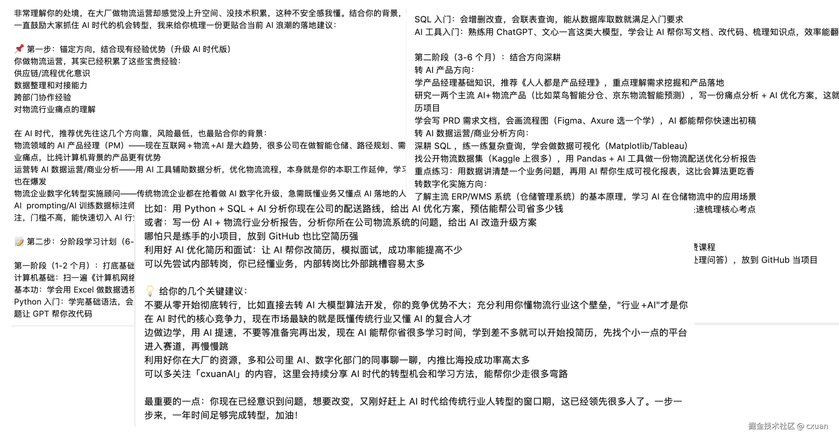 他这份工作其实也是有优势的,他觉得自己"没技术",但物流运营本身就是一种技术------只不过这种技术不是写代码,而是懂业务、懂流程、懂协同。问题在于,他需要把这些隐形经验转化成显性能力。
