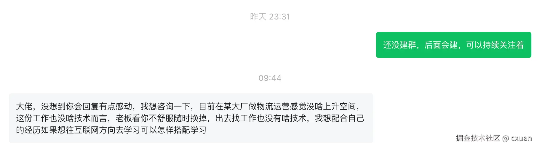 前几天突然收到一条私信,这个人想要加群,因为我现在还没有建任何交流群,但不保准以后会建,所以我就回复了一下。