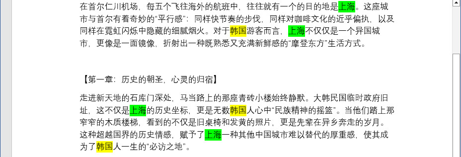 textSelections = document.FindAllString("韩国", False, True)