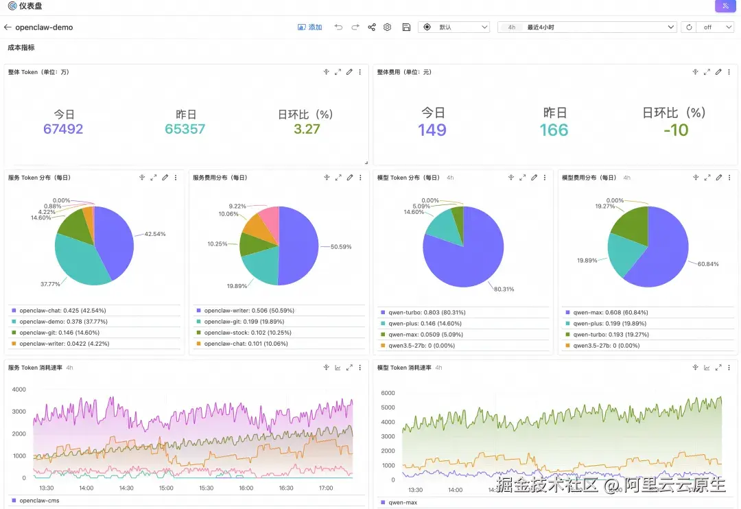 - Token 消耗速率和费用趋势 ------ 按模型、按时间维度拆分。