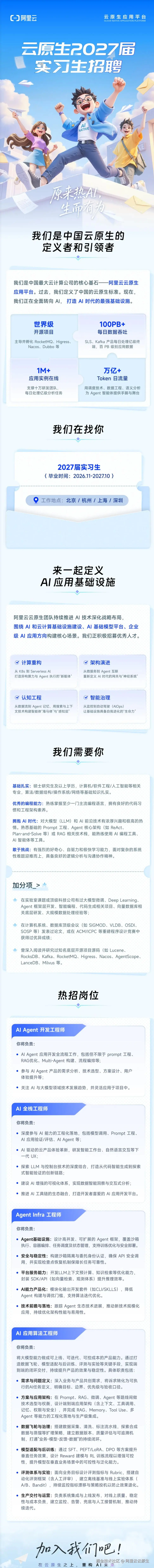 同学,你好!阿里云云原生 2027 实习生招聘启动