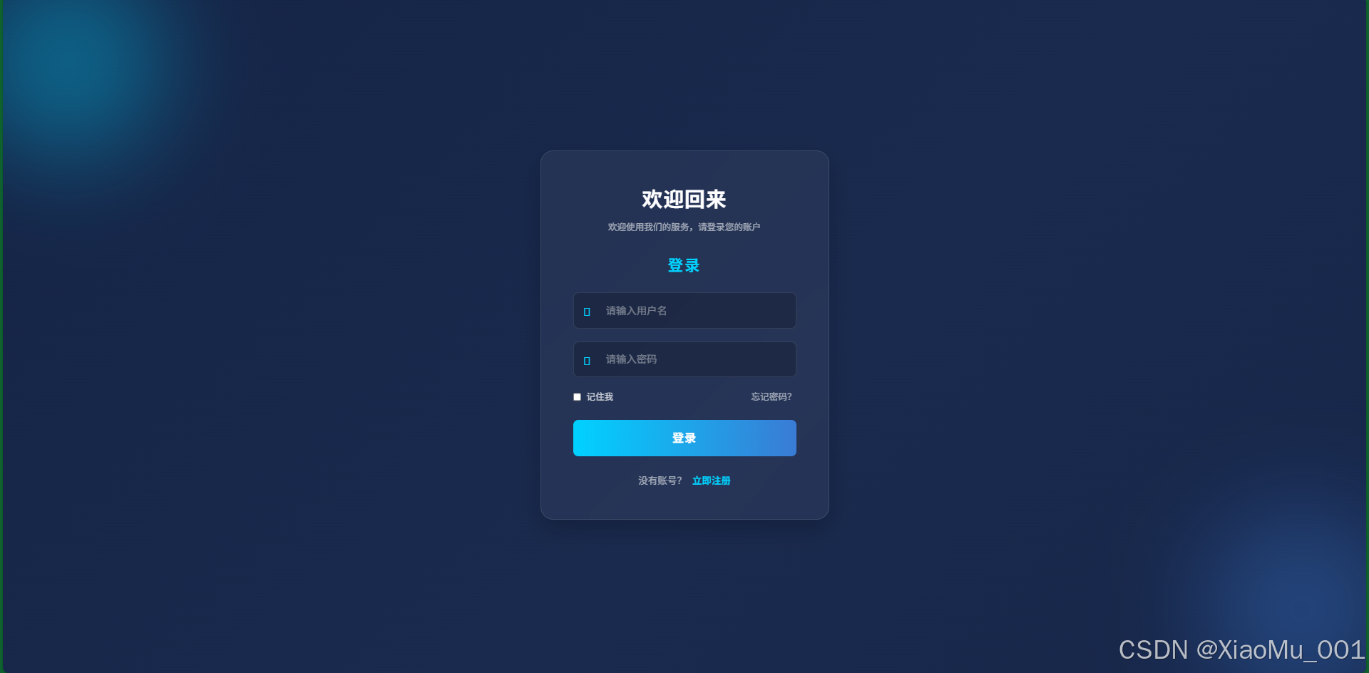 用户通过账号密码登录系统,支持新用户注册。