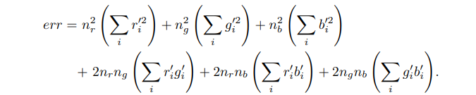 所以在这一步的目标是找到一个法向量使得各RGB点到该法向量的距离平方和最小,也就是: