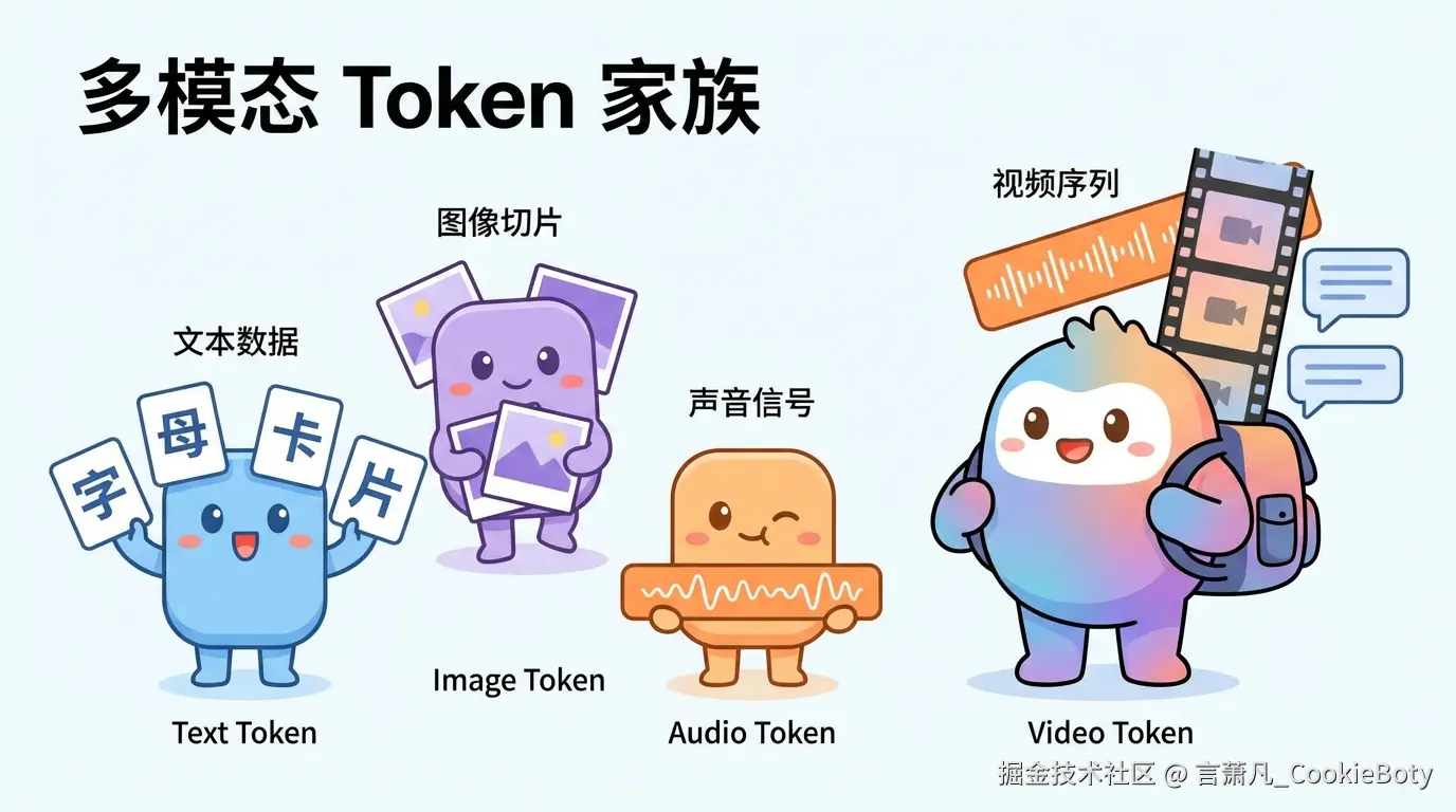 文本模型里的 Token,是文本被切分后的处理单位;多模态模型里的 Token,则是文本、图像、音频、视频等信息被模型编码后形成的统一计算单位或等价计费单位。