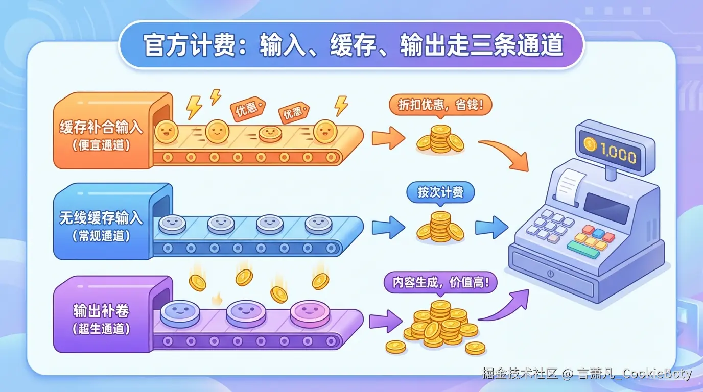 这四条公式,基本就能把"官方怎么计费"和"中转站为什么这么扣费"完整串起来。