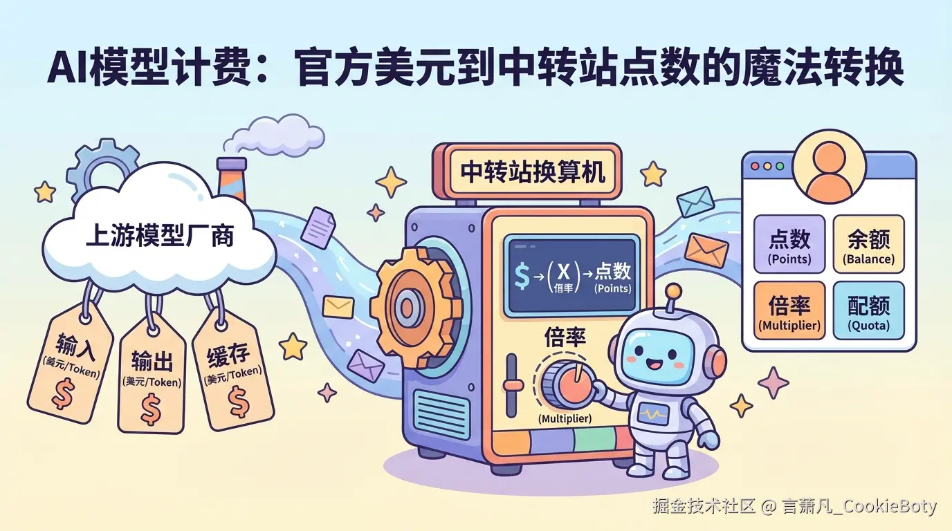 这篇文章想回答的,其实只有一个核心问题:为什么同样是调用一次大模型,有的平台按美元计费,有的平台显示的是"点数""余额""倍率",而且开启缓存、开启 thinking 之后,扣费逻辑还会明显变化?