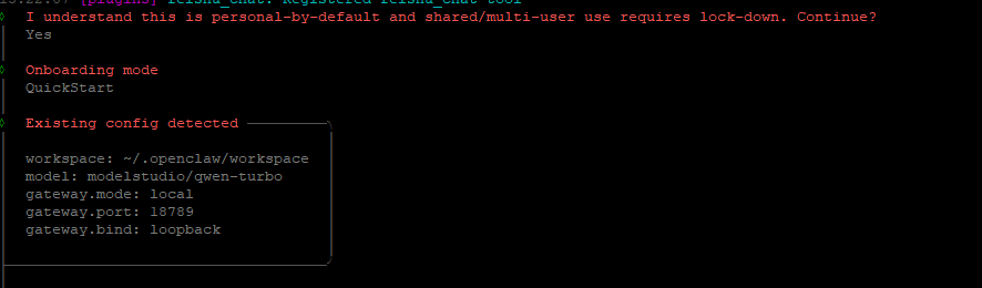 回车后,可以看到默认模型是modelstudio/qwen3.5-plus,可以进行修改,我这个模型没有免费额度了,换一个