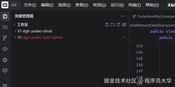数据表设计完成后,我会把前后端工程文件夹都放到AI IDE编辑器中,让AI同时生成对应的实体类、Service、Controller以及前端页面。