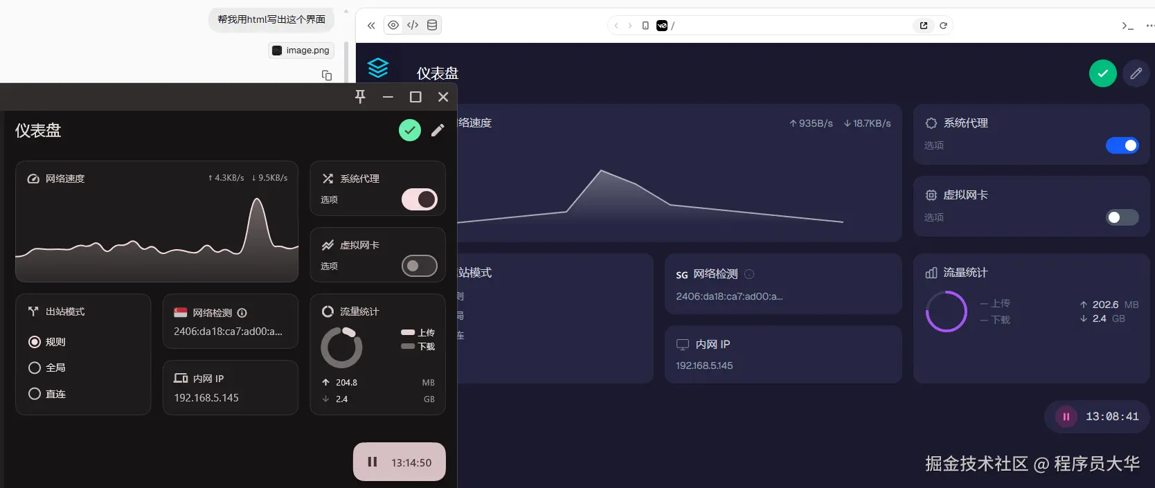 使用方法很简单:直接把UI效果图上传,告诉AI要干嘛,它会自动生成对应的代码。虽然不能100%完美还原,但相似度已经很高了,稍作调整下就能可以用。