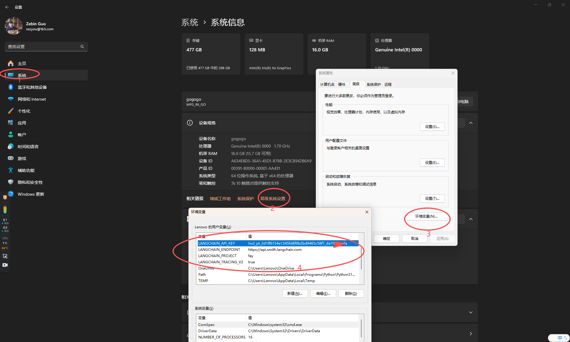 在系统上添加如图4个环境变量,这里key就是上一步保存下来的,project自由填写,待会自动创建的。