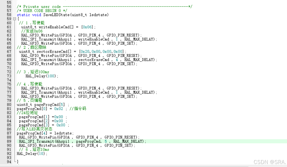 HAL_SPI_Transmit(&hspi1 , pageProgCmd, 5 , HAL_MAX_DELAY); // 发送编程指令+数据