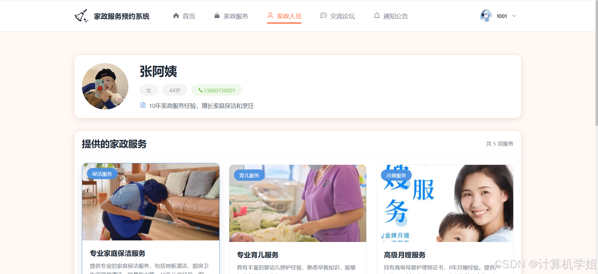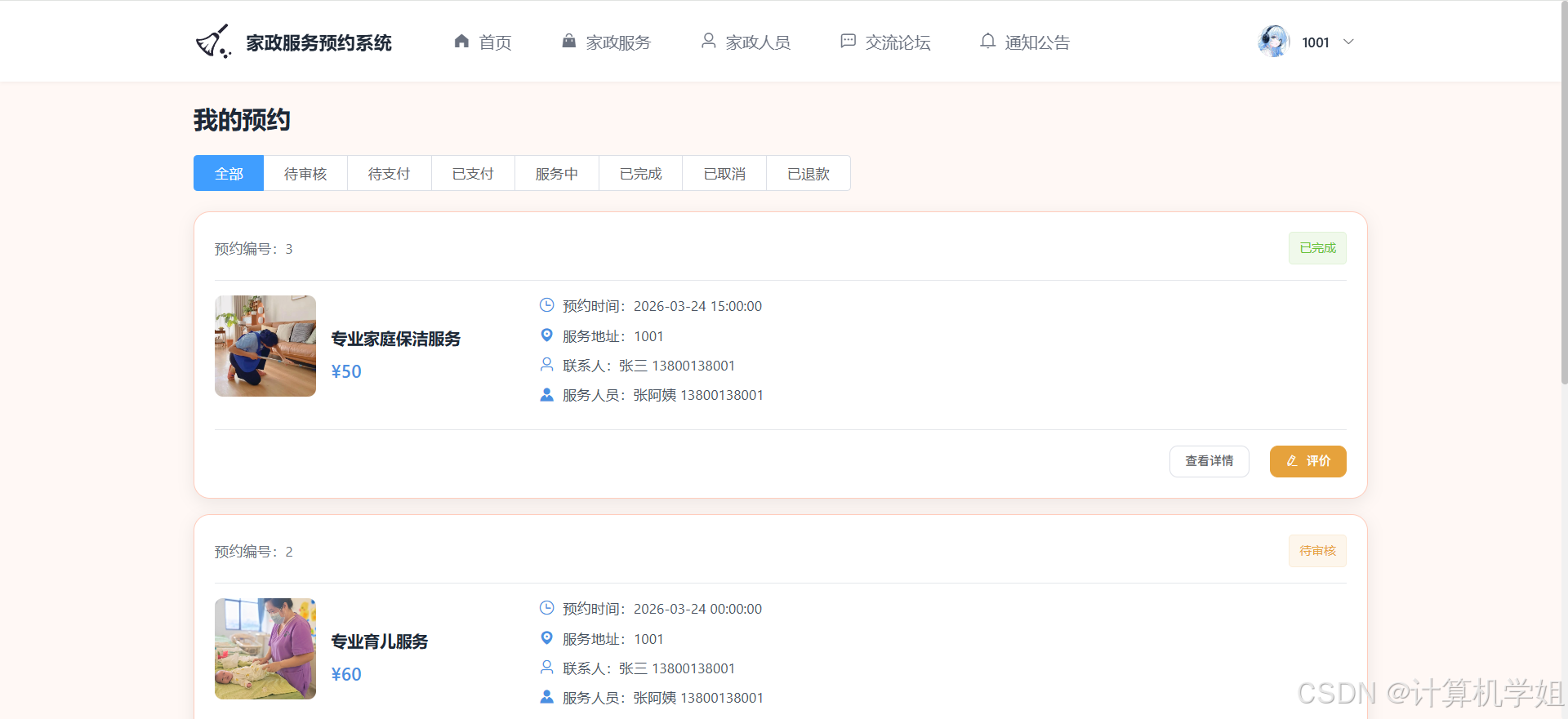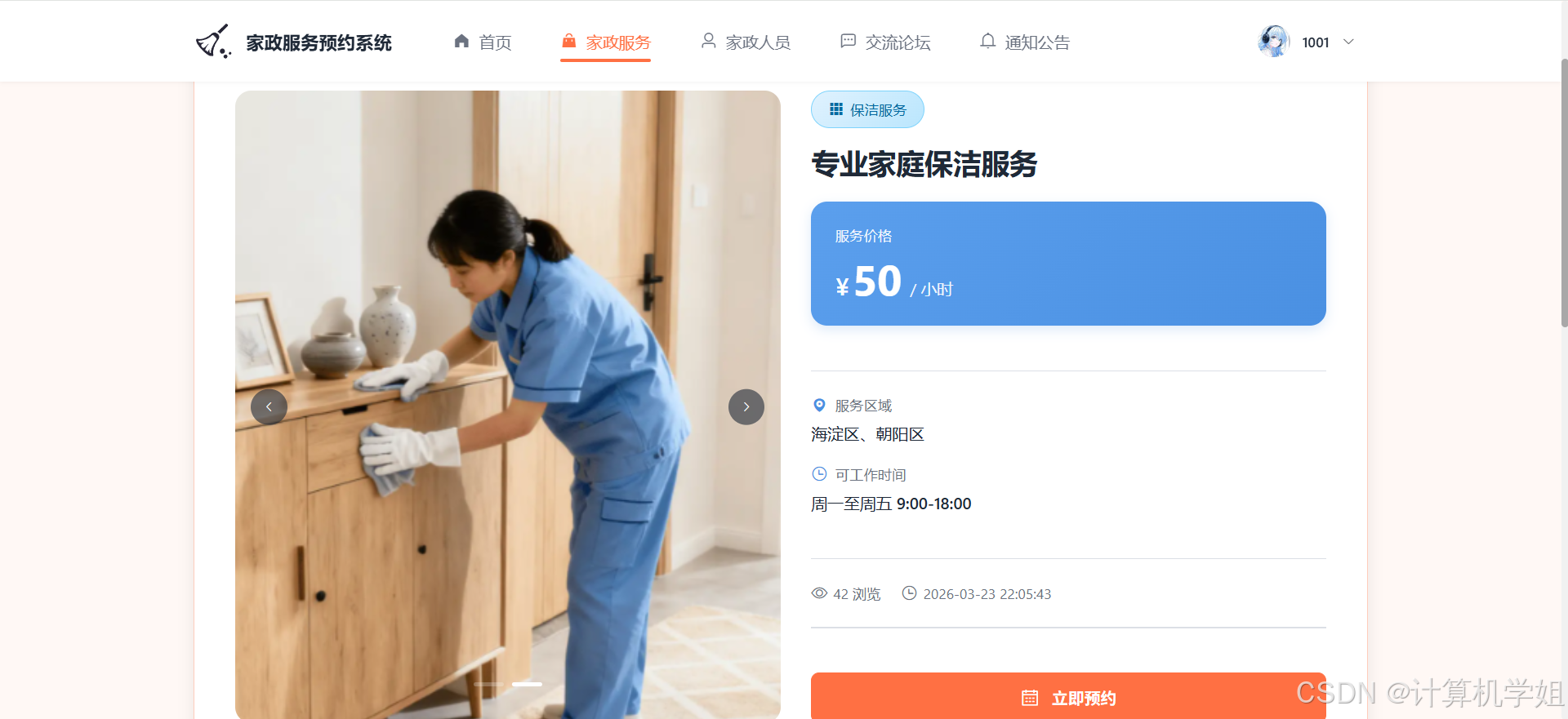 【2026最新原创】基于Java+SpringBoo+Vue+MySQL的家政服务预约系统,三角色,个性化推荐算法,数据可视化统计,家政人员管理,家政服务管理,服务预约管理,评价信息管理等