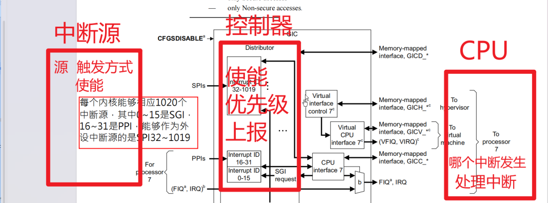 - GIC:中断控制器,是所有外设中断的 "总调度器"