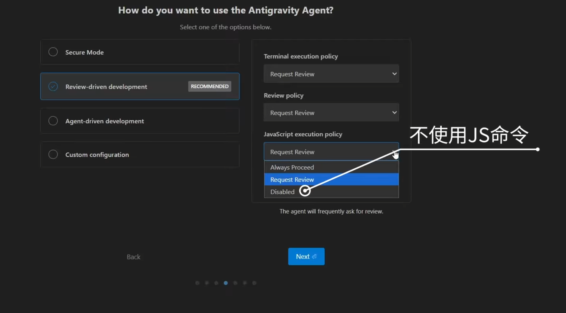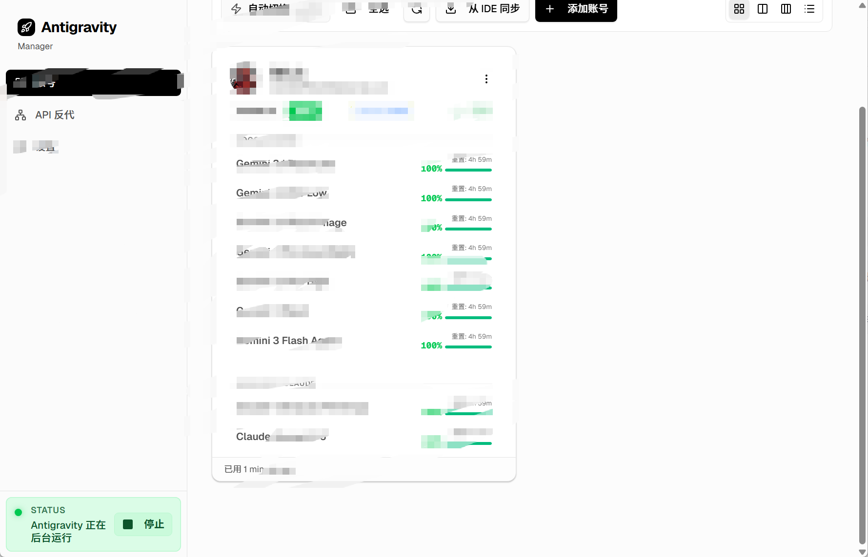 我这里选择第三个 全自动模式,当然后续也可以设置黑名单,可能就是有点费token,但好在Antigravity是free的