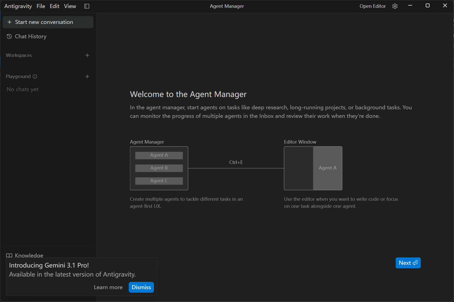 然后打开Antigravity,点击next