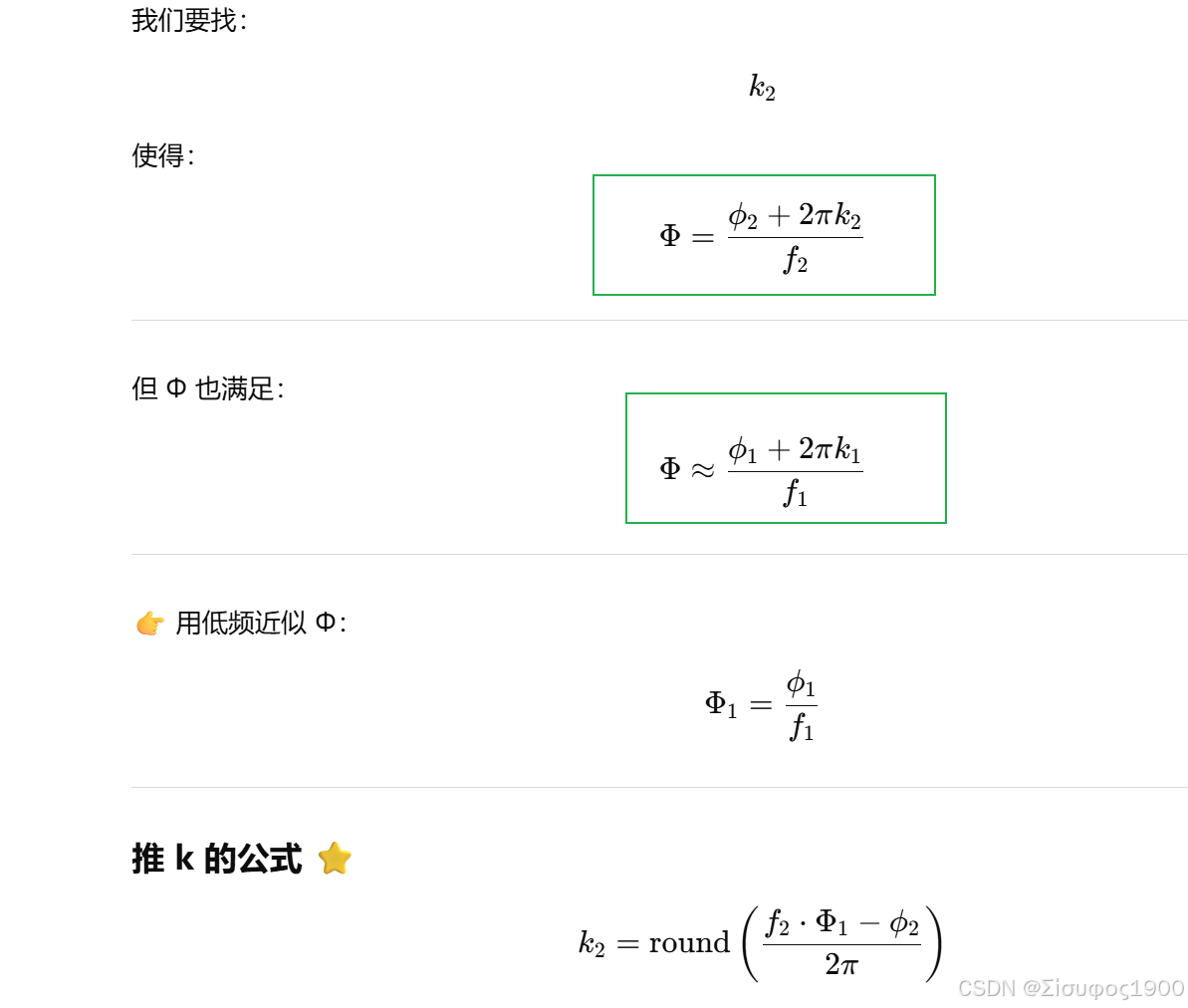 用不同"频率"的相位去反推 k