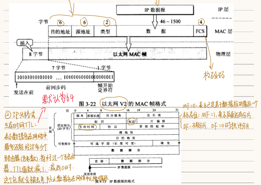 二、核心协议格式(必学:MAC 帧 / IP 数据报 / TCP 报文段)