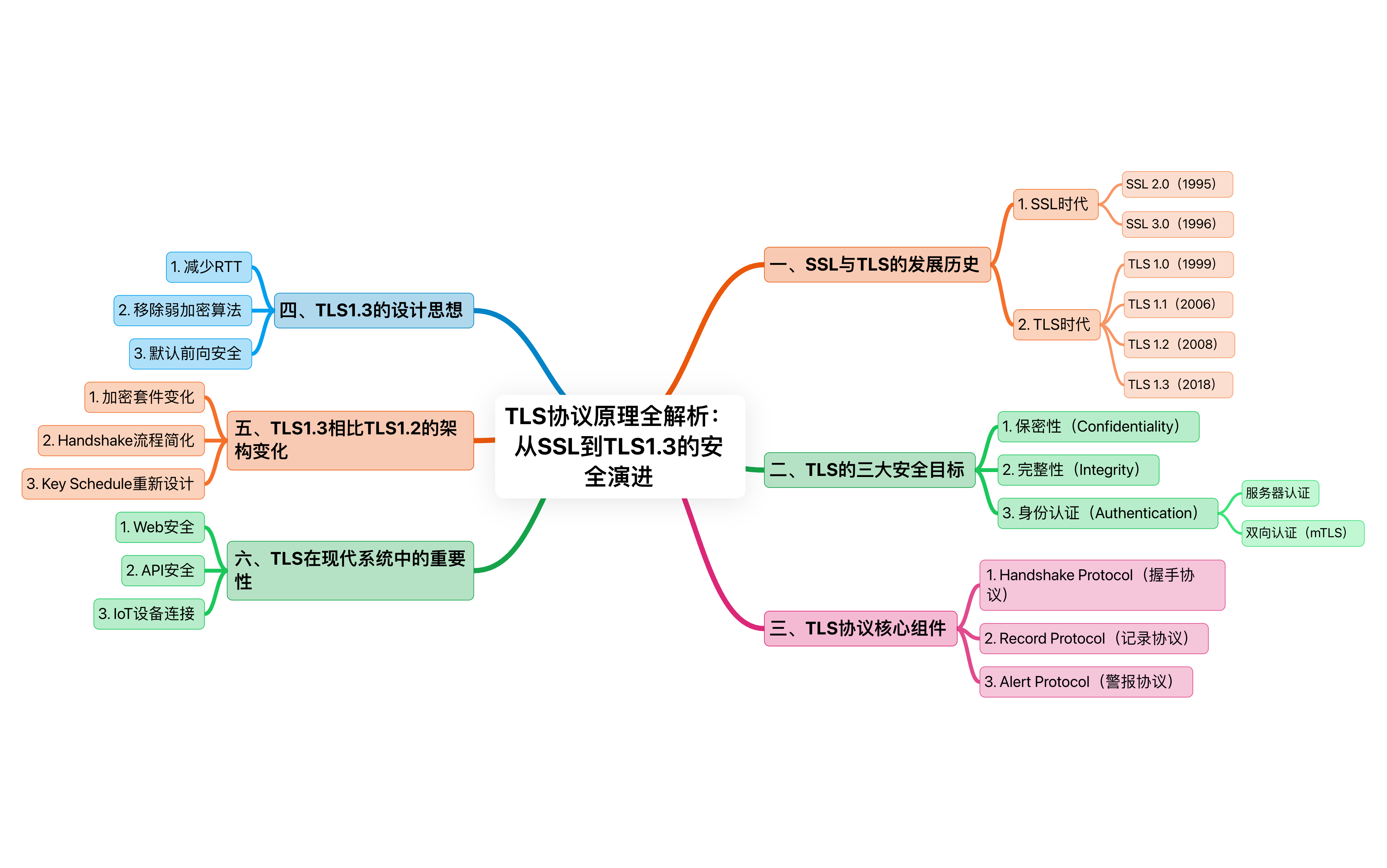 TLS 的前身是 Secure Sockets Layer(SSL) 。从最早的 SSL 到今天广泛使用的 TLS 1.3 ,这一协议经历了二十多年的演进,其目标始终围绕三个核心:保密性、完整性与身份认证。