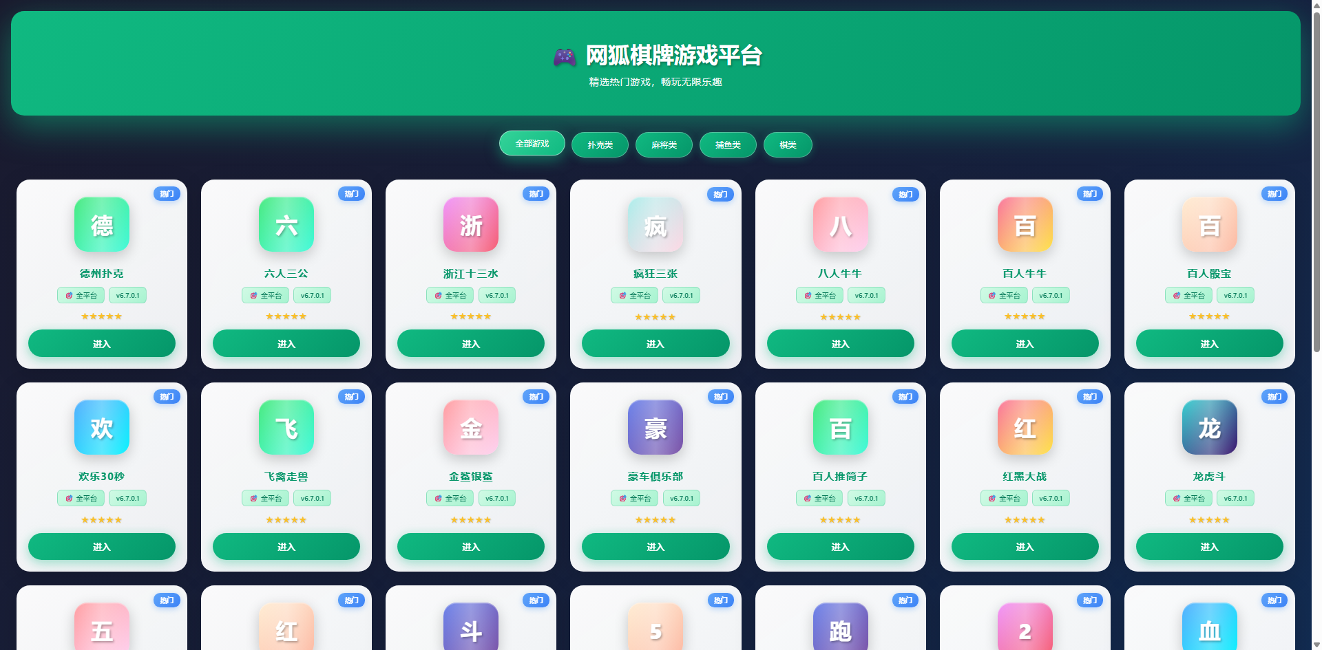 游戏类型过滤(全部/扑克/麻将/捕鱼/棋类)