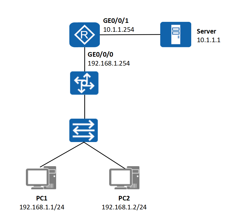 [Router-GigabitEthernet0/0/1] ip address 10.1.1.254 24