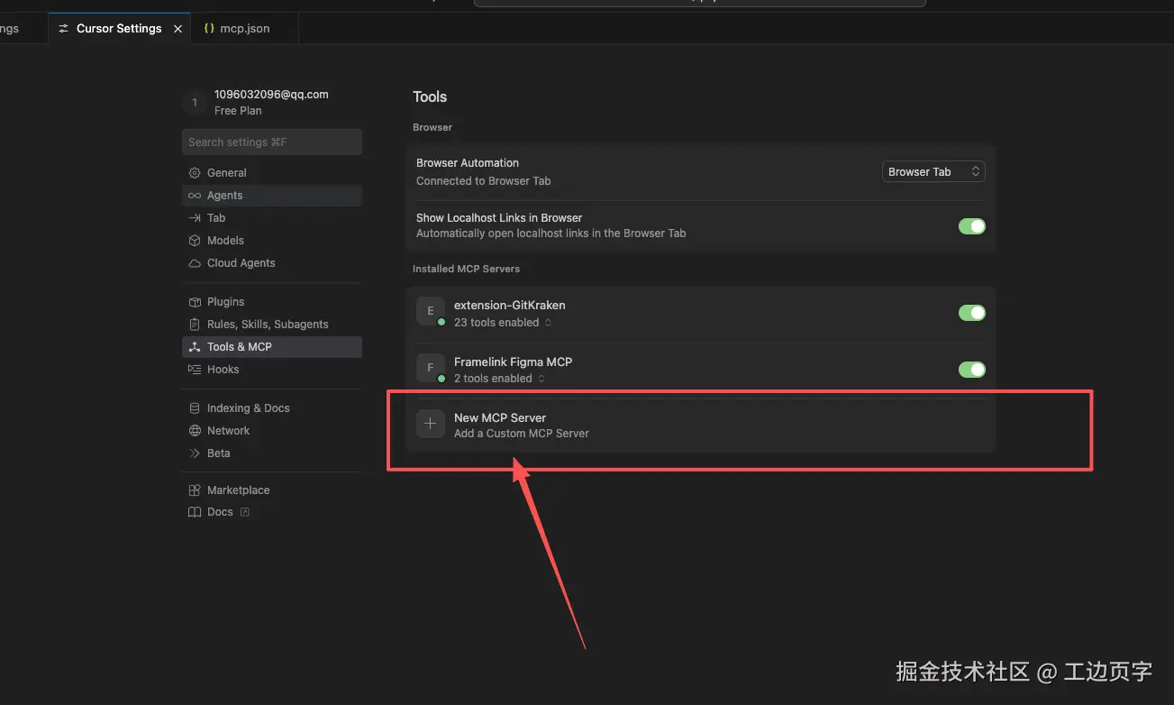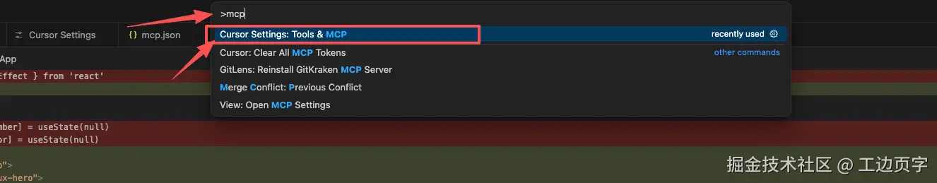 - 按 Cmd + Shift + P,输入 MCP,选择「Open MCP setting」。 如下