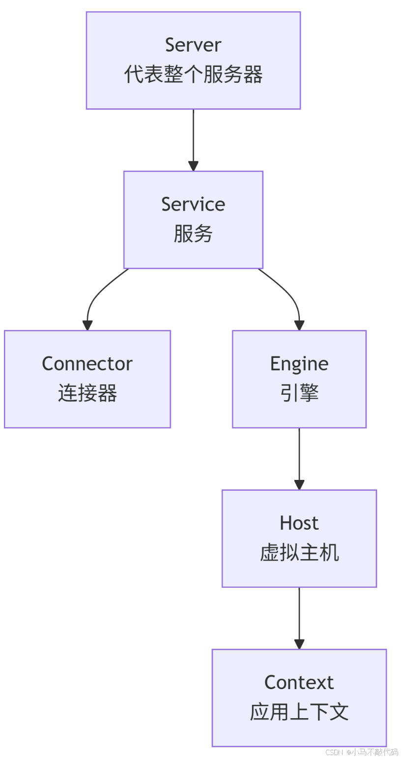 当调用tomcat.start()时,Tomcat内部的组件树开始启动。Tomcat的架构是分层的: