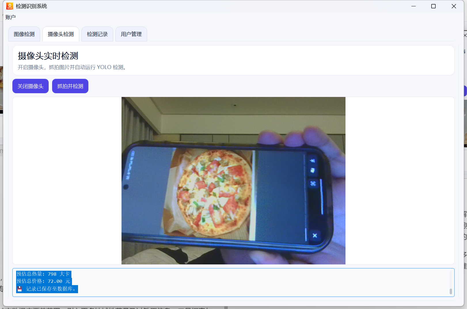 - 历史记录:自动保存每次检测的截图、时间、菜品明细等。