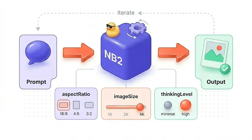在我们开始之前快速说明:Nano Banana 2不像许多开源管道那样暴露"扩散步骤"控制。你的质量和速度调节旋钮是imageSize和thinkingLevel。相应地使用它们。