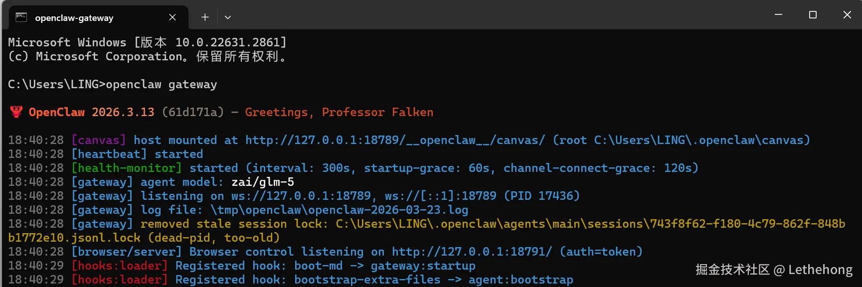 参考信息中特别提到:"重新打开一个命令框"。这一细节揭示了 OpenClaw 的双进程运行模型。以下是内核启动与运行的架构全景图: