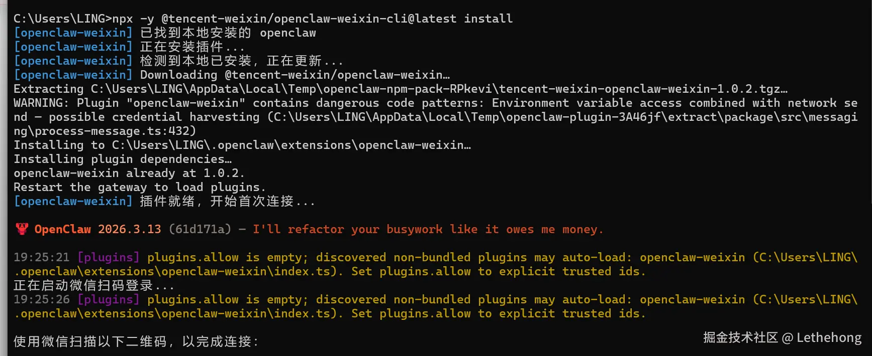 这一过程通过 NPM(Node Package Manager)生态拉取官方提供的微信适配器,并将其动态挂载到 OpenClaw 的核心引擎上。