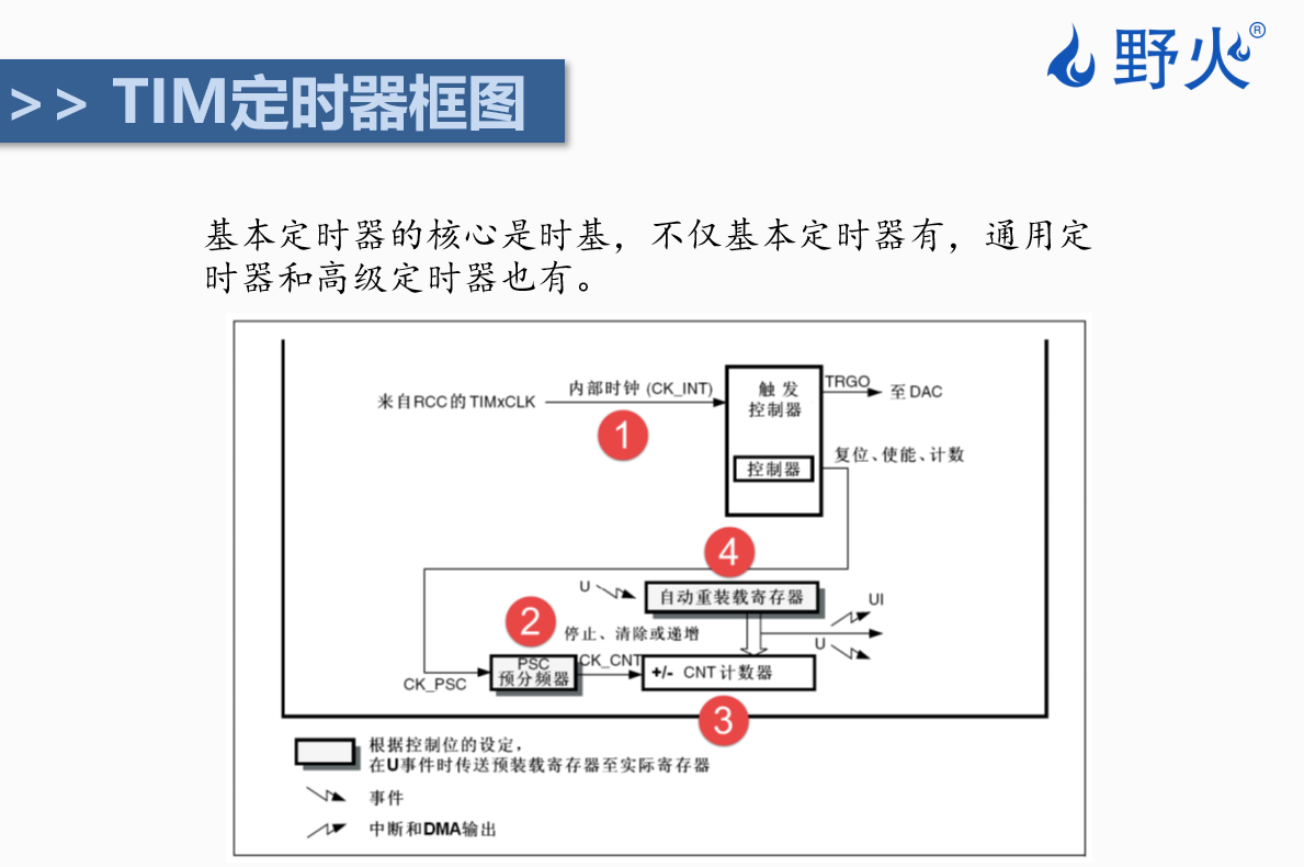 来自 RCC(复位与时钟控制单元)的 TIMxCLK → 经过内部处理后成为 CK_INT(内部时钟)。