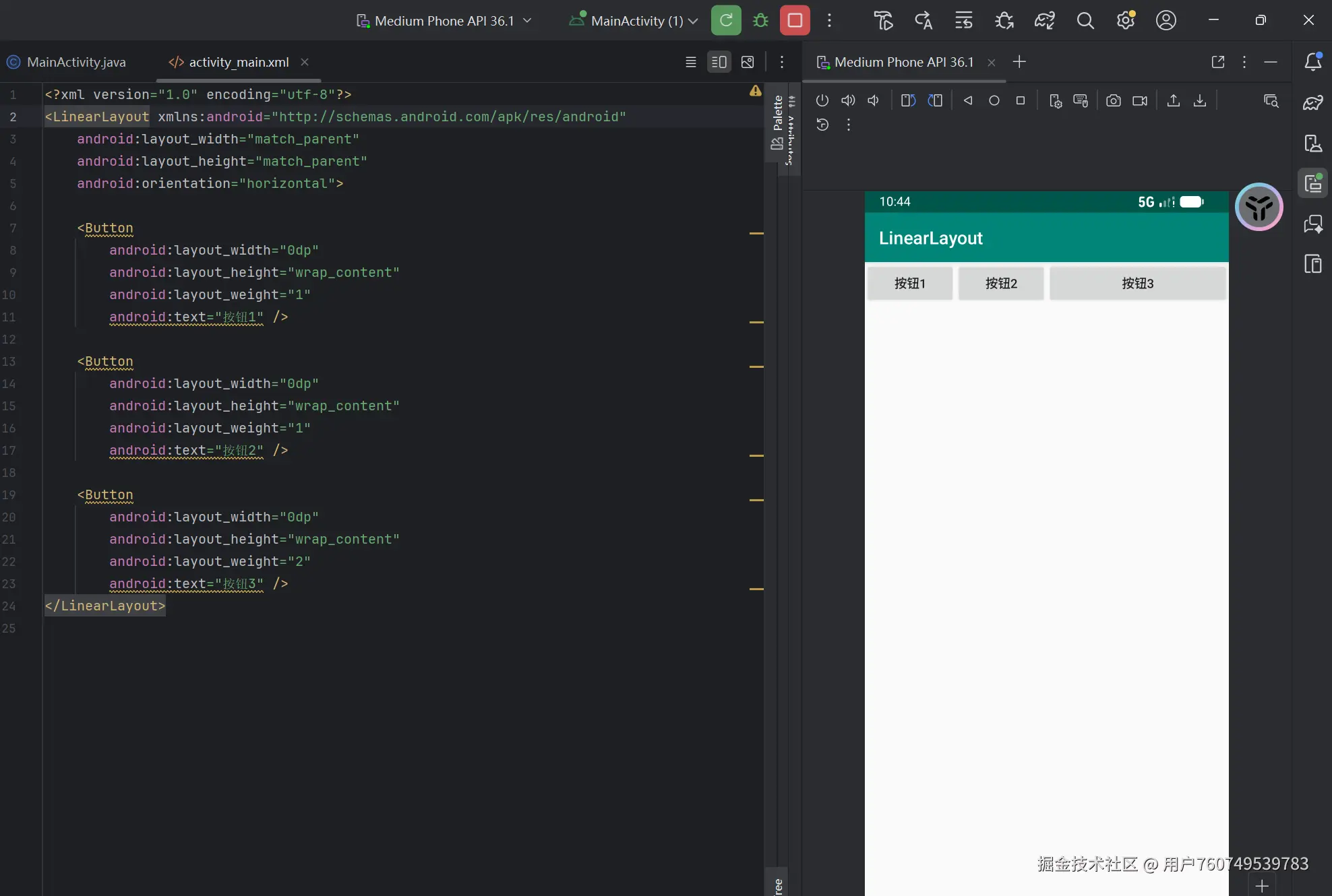 LinearLayout是一种线性布局,按照水平或垂直方向排列子视图。默认方向为水平(horizontal),可通过android:orientation属性修改为垂直(vertical)。子视图按照添加顺序依次排列,支持权重(android:layout_weight)分配剩余空间。