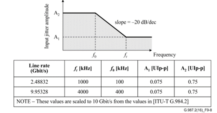 标准也会定义Jitter模板,用不同抖动频率处的最大UIp-p来衡量