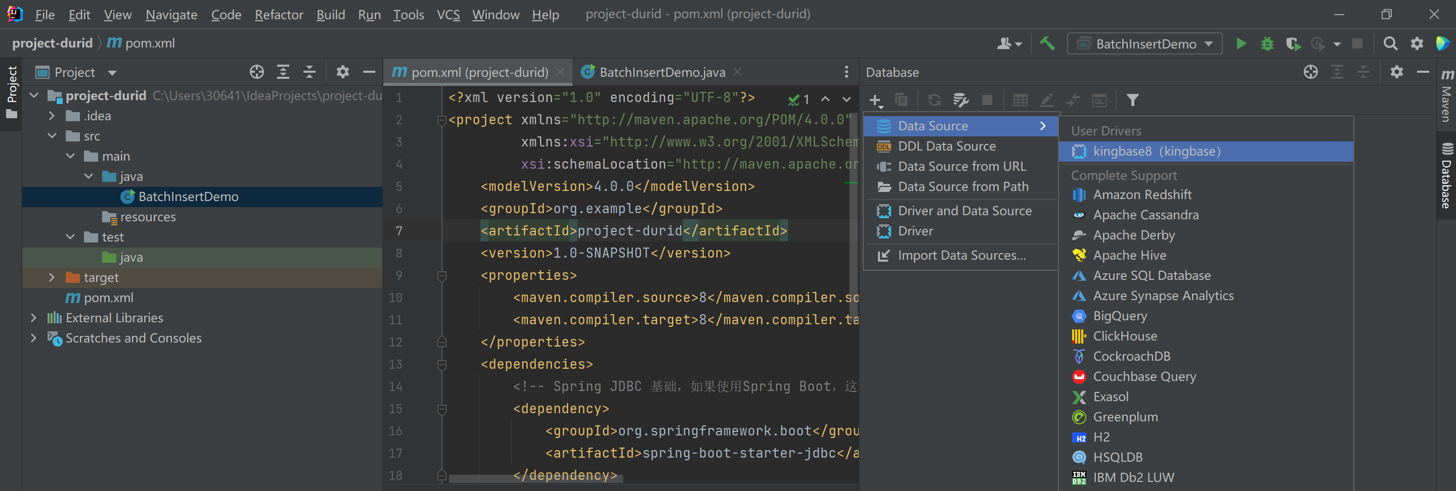 idea64通过jdbc连接到kingbase数据库