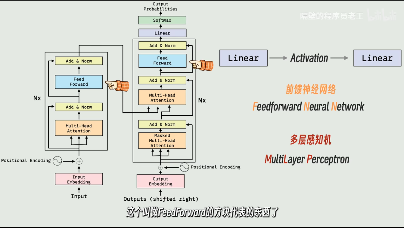 前馈网络 (Feed Forward): 进一步对每个词的特征进行非线性变换。