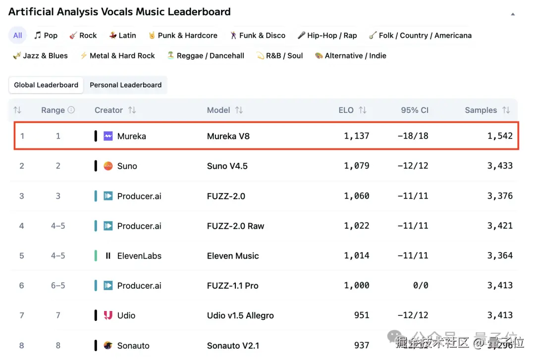 当然了,即使不谈 Mureka V9,仅从 V8 的两次登顶,我们也已经能看到一个更清晰的变化: