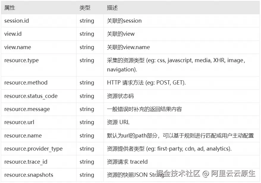 要让每个网络请求的各个阶段都清晰可见、可量化,首先需要建立一套标准化的数据模型。阿里云 RUM 采用 Resource 事件作为网络请求监控的核心数据模型。