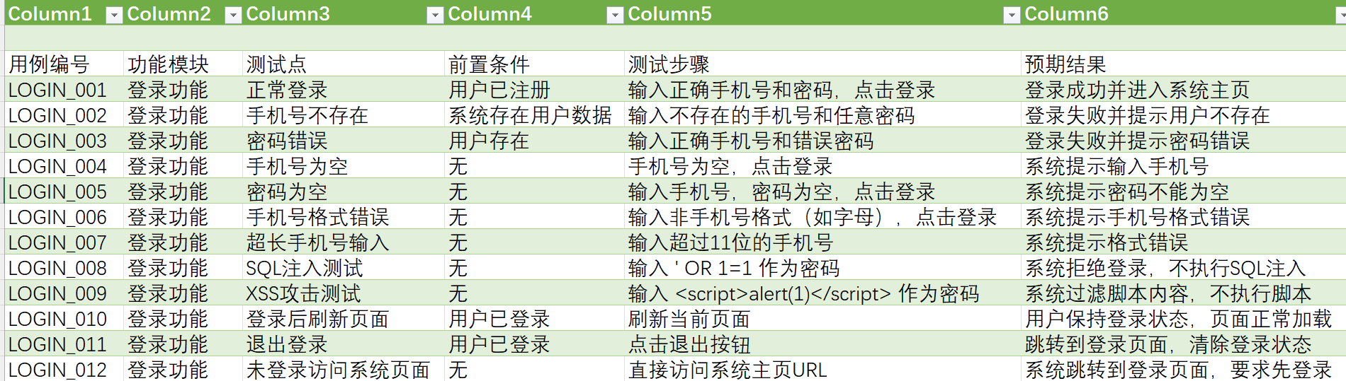 5.2.1登录模块测试用例