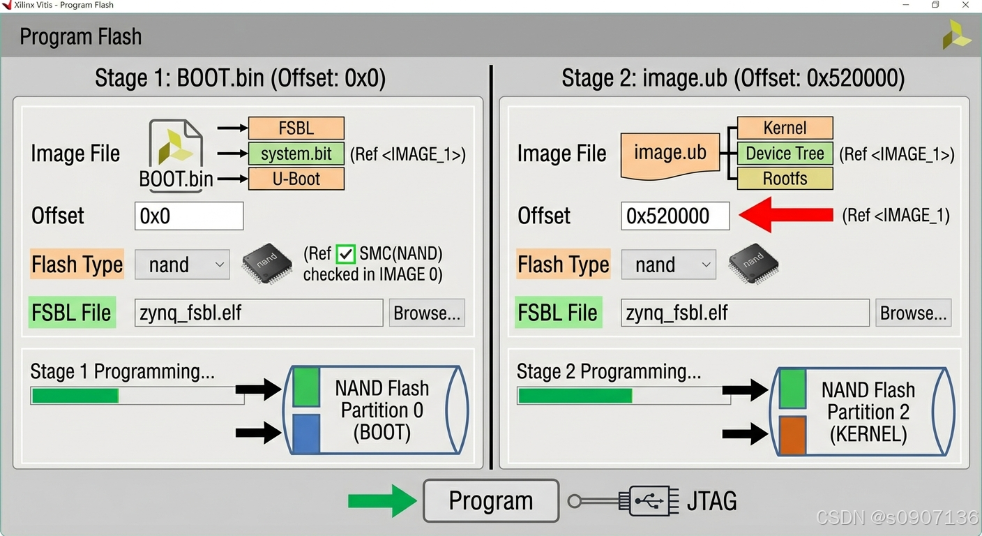 ⚡ 第四步:通过JTAG烧录文件到NAND Flash