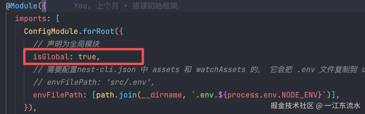 一般都会把ConfigModule声明为全局模块,这样其他模块就不用imports了。