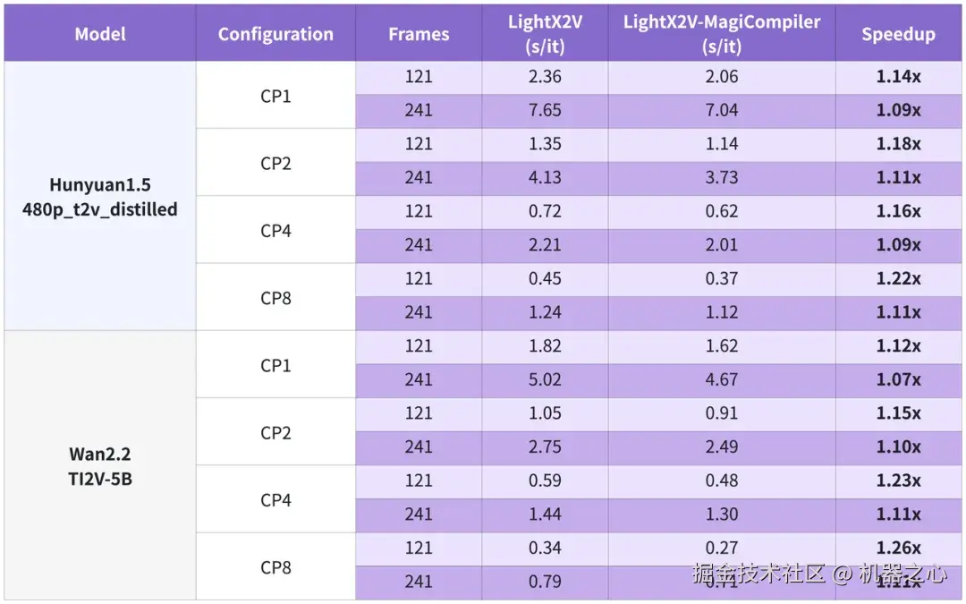 - 推理端表现:在多模态视频生成场景下,MagiCompiler 展现了极其扎实的硬件泛化能力
