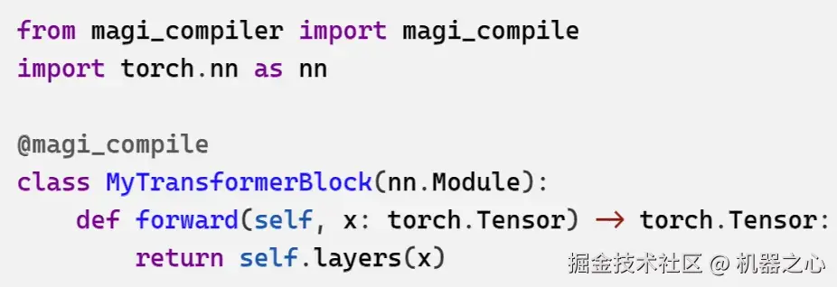 无需修改模型源码,magi_compile 一键装饰 TransformerBlock: