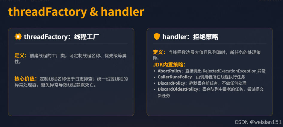 - 阿里规范:强制要求手动创建ThreadPoolExecutor,明确指定所有参数。