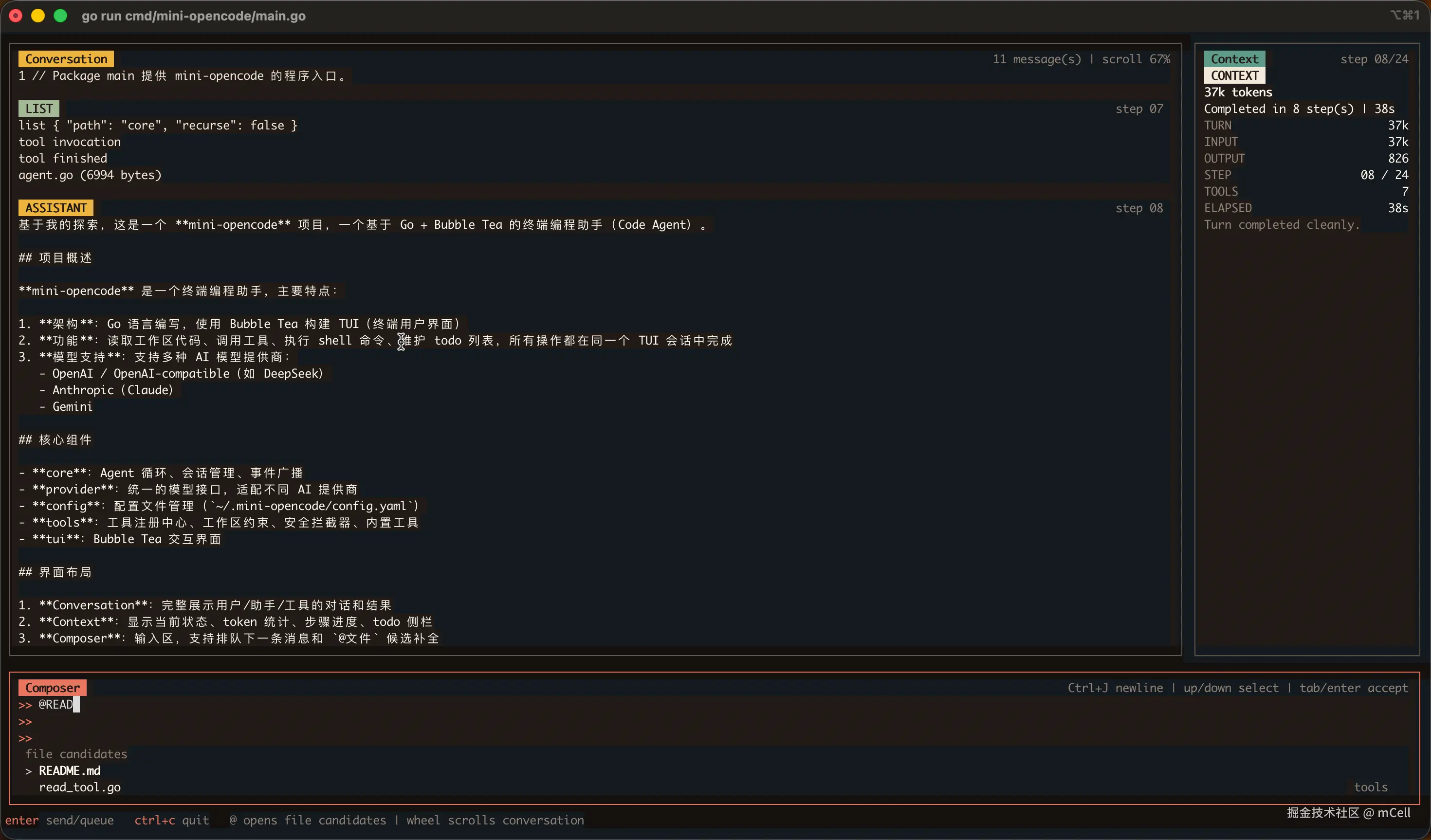 而 mini-opencode 这次,恰好就是一个非常适合拿来做这件事的载体。