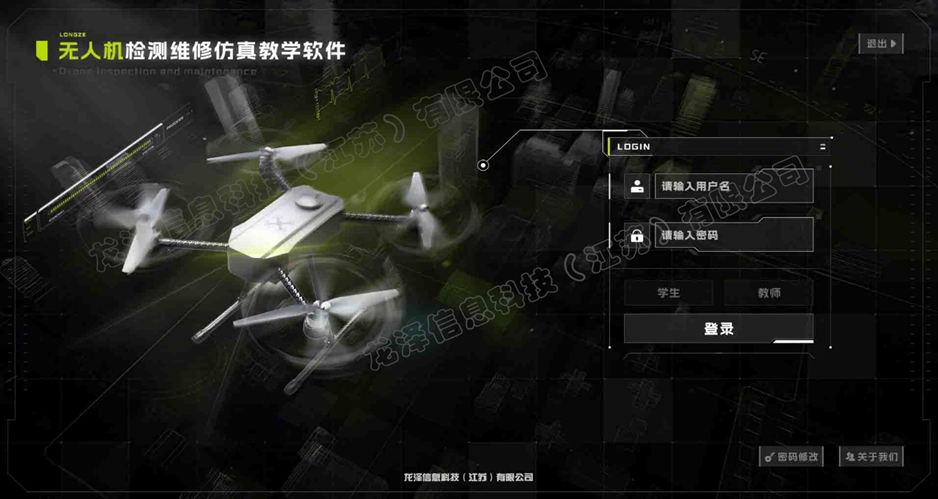 仿真教学软件作为破解这一痛点的核心载体,其架构合理性、功能贴合度、落地适配性直接决定教学效果。今天,我们就来深度拆解龙泽信息科技(江苏)有限公司 (简称:龙泽科技)研发的无人机检测维修仿真教学软件,从技术架构、核心功能实现、后台管理到落地实践,全维度解析其技术亮点与实操优势,为院校技术选型、教学从业者及相关开发者提供可直接参考的技术方案。