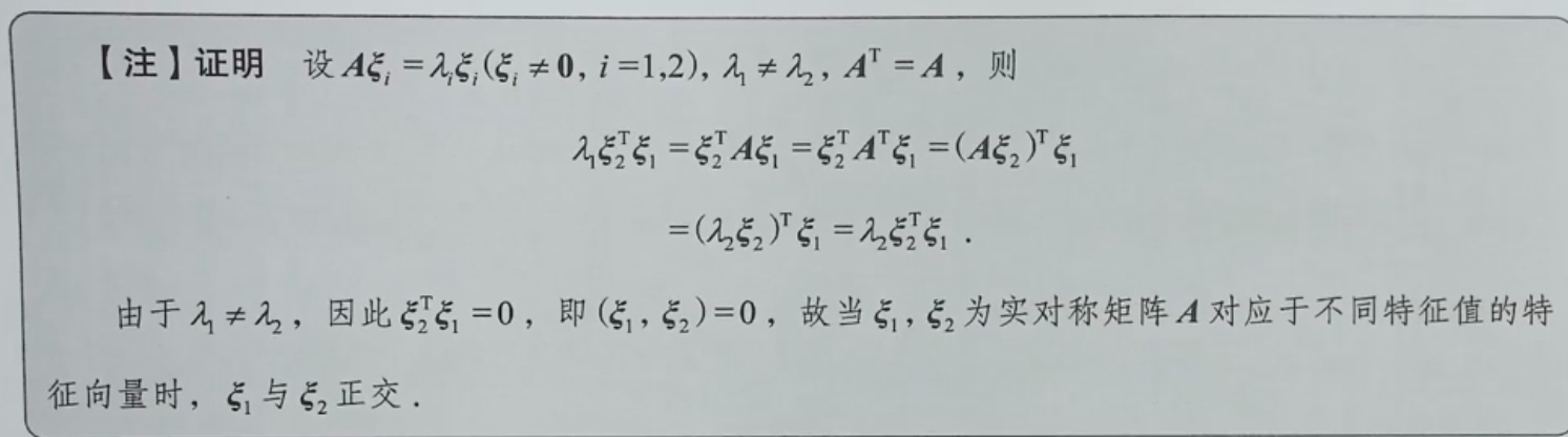 ①实对称矩阵的不同特征值的特征向量正交。