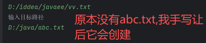 ①所以目标文件需要我先自己手动创建?:不需要,因为你输入目标文件的时候最后一个就是带后缀的文件,后面FileOutputStream会自动按照这个去创建文件