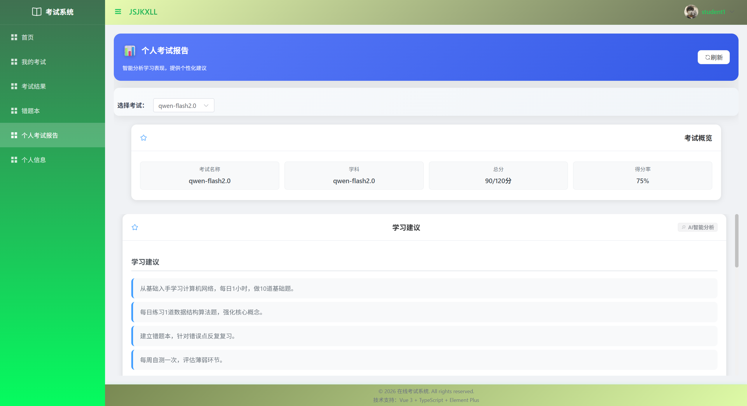 学生:查看考试、在线作答、查看成绩与错题本/报告