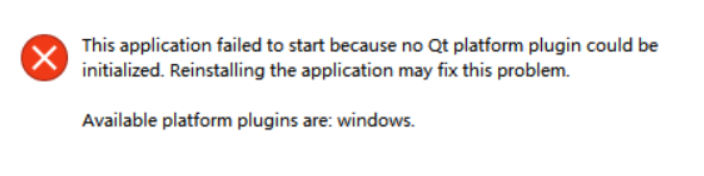 This application failed to start because no Qt platform plugin could beinitialized. Reinstalling the application may fix this problem.
