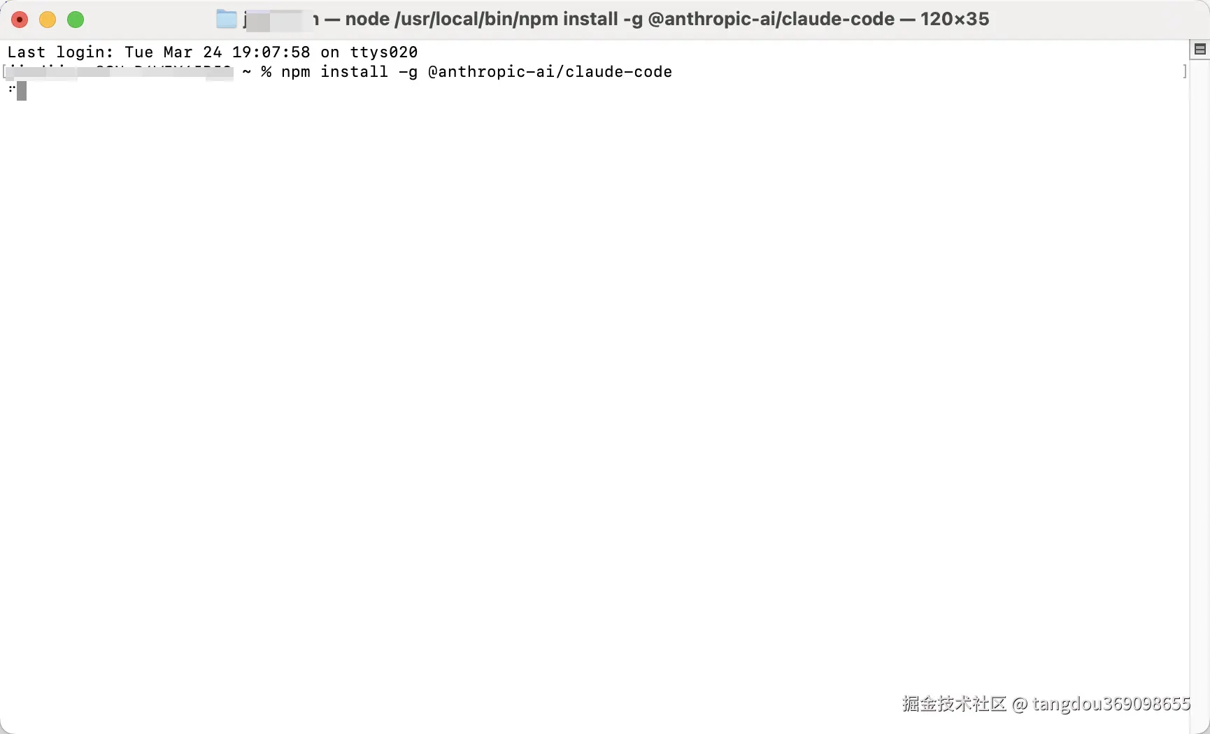 在命令行界面,执行以下命令安装 Claude Code。